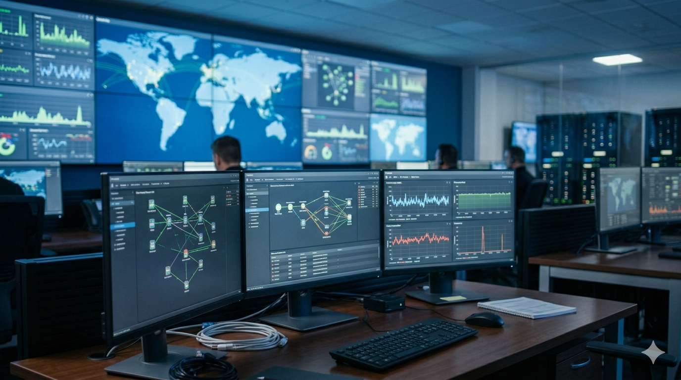 Diferente do monitoramento comum, a Inteligência Artificial em redes consegue correlacionar eventos de diferentes fontes. Ela identifica, por exemplo, que uma oscilação de energia em um POP (Ponto de Presença) remoto, somada ao aumento de temperatura de um hardware, indica uma falha iminente de hardware antes mesmo do componente queimar.